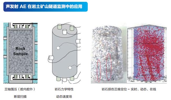 根据国家《“十四五”矿山安全生产规划》对矿山安全生产提出了更高标准,要求强化风险管控与隐患治理。因此,我国高校及科研试验单位利用声发射技术开展一系列研究,如:岩石在常规三轴加载时的损伤破裂研究、周期性疲劳载荷作用下岩石的损伤劈裂研究等,对深入了解地质勘察,提高资源开采效率,降低事故风险具有重要意义。